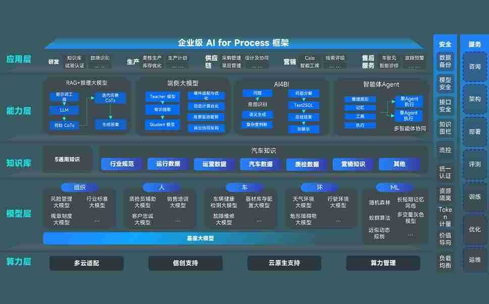 端到端的一站式AI工作空间深度融合了从企业战略规划到日常经营的全流程业务板块,,,,定向解决车企内部领域多、、、部门多、、链条长、、场景碎片化等难题,,支持车企快速构建以AI为核心的生产力写作体系,,实现任务执行与AI能力的无缝集成与交互