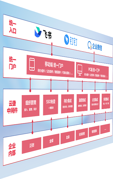 对协作平台提供支持服务,,,支持企业应用与协作平台对接,,包含组织同步、、、、消息集成、、、、待办集成等。。。支持目前主流的协作平台:钉钉、、、、企微和飞书。。。。